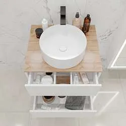 11 732 Р Тумба со столешницей ВЕЛЛИ/Veil 60П (600х500х500) 2я белая аляска/дуб вотан