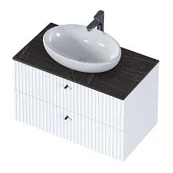 Подвесная тумба Delta — глоток свежести и легкости для ванной комнаты. Ручка в форме треугольного выпила добавляет загадочности модели.