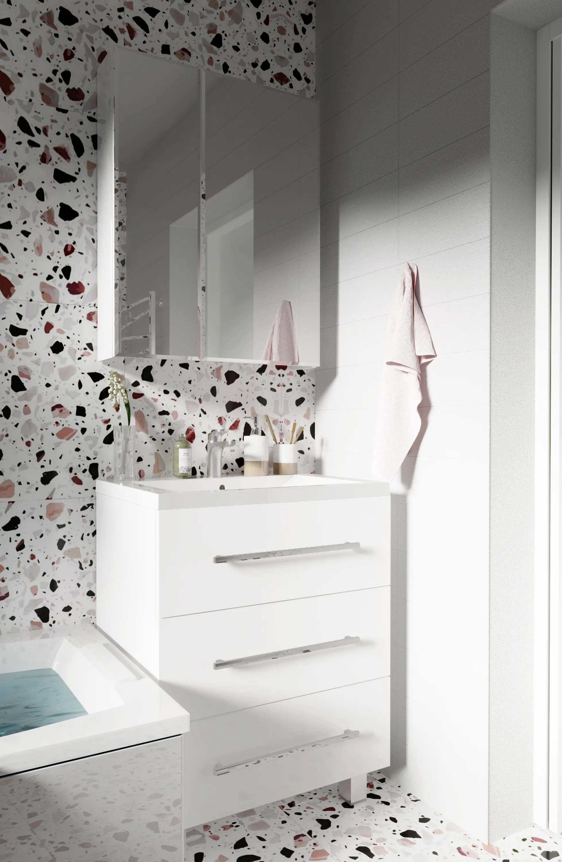 27 849 Р Тумба со столешницей СТЕЛЛА/Desire 80П (806х481х501) 2я белый керамогранит черный