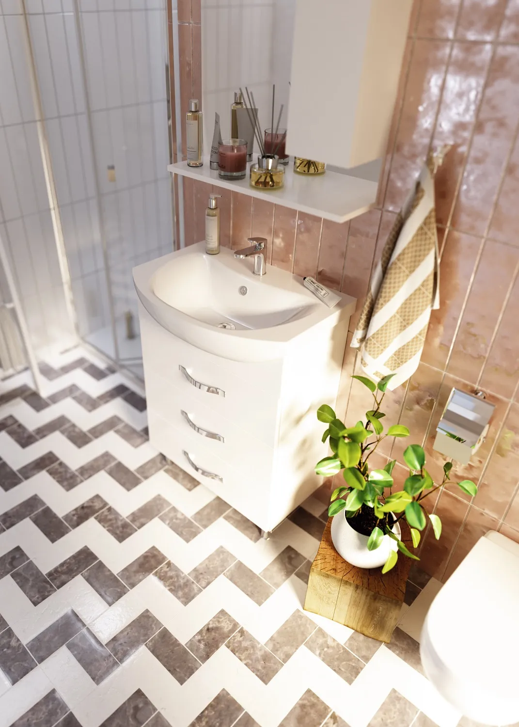 15 410 Р Тумба под раковину Вита 65Н 3в.я. белый глянец, МДФ