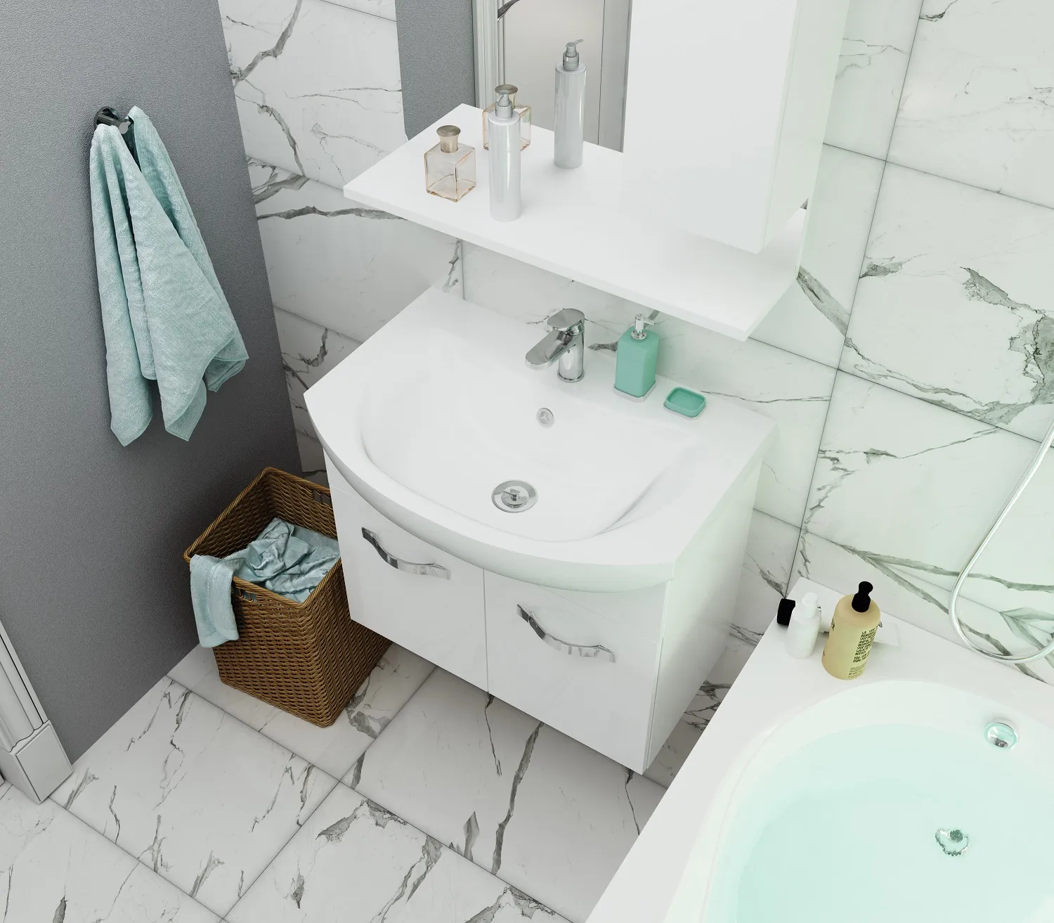 27 687 Р Тумба со столешницей СТЕЛЛА/Desire 900х487х500П 2я монолит айсберг /эмаль белая