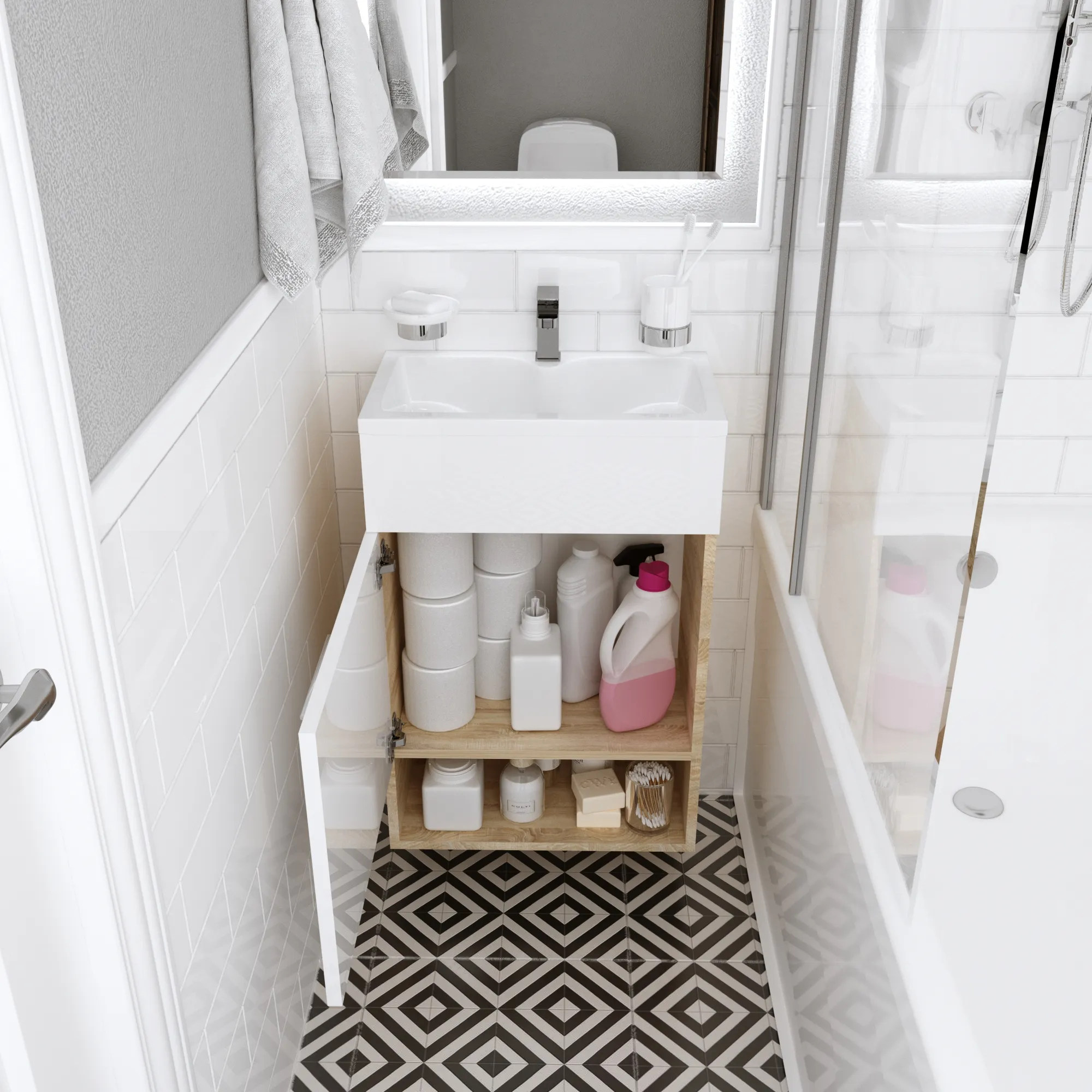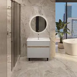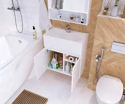 Практичная и доступная модель, качество которой многократно превышает ее стоимость. Лаконичные формы, отсутствие лишних деталей, фурнитура в виде функциональной ручки, которая может использоваться как держатель для полотенец, а также всегда актуальный и востребованный цвет делают ее настоящим универсалом, уместным в ванной комнате любых размеров, габаритов и цветового оформления. Две полки разной высоты позволяют с удобством разместить даже габаритные предметы, а продуманная конструкция раковины предотвращает расплескивание и другие проблемы с эксплуатацией.Характеристики: