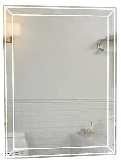 Невесомое, стильное, идеально подходящее практически для любой ванной комнаты, это зеркало сочетает в себе классический дизайн с современных технологиями, которые превращают его в функциональный технологичный объект. Зеркало имеет универсальную прямоугольную форму с мягкими краями, а также оснащено подсветкой, которой легко управлять с помощью выведенной на лицевую панель кнопки. Приглушенный белый свет, излучаемый зеркалом по всему периметру, мягко и деликатно освещает ванную комнату, создавая  в ней особенно уютную атмосферу, которая прекрасно располагает к расслабляющим процедурам.